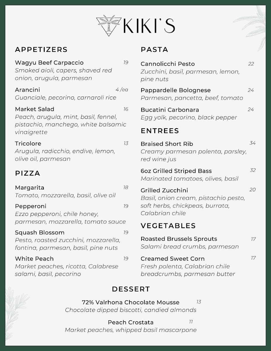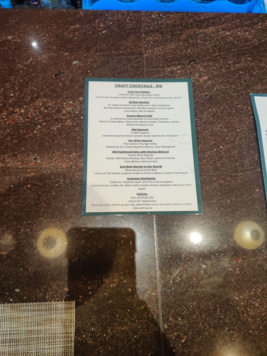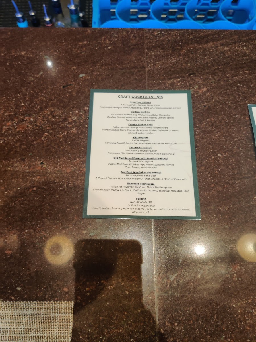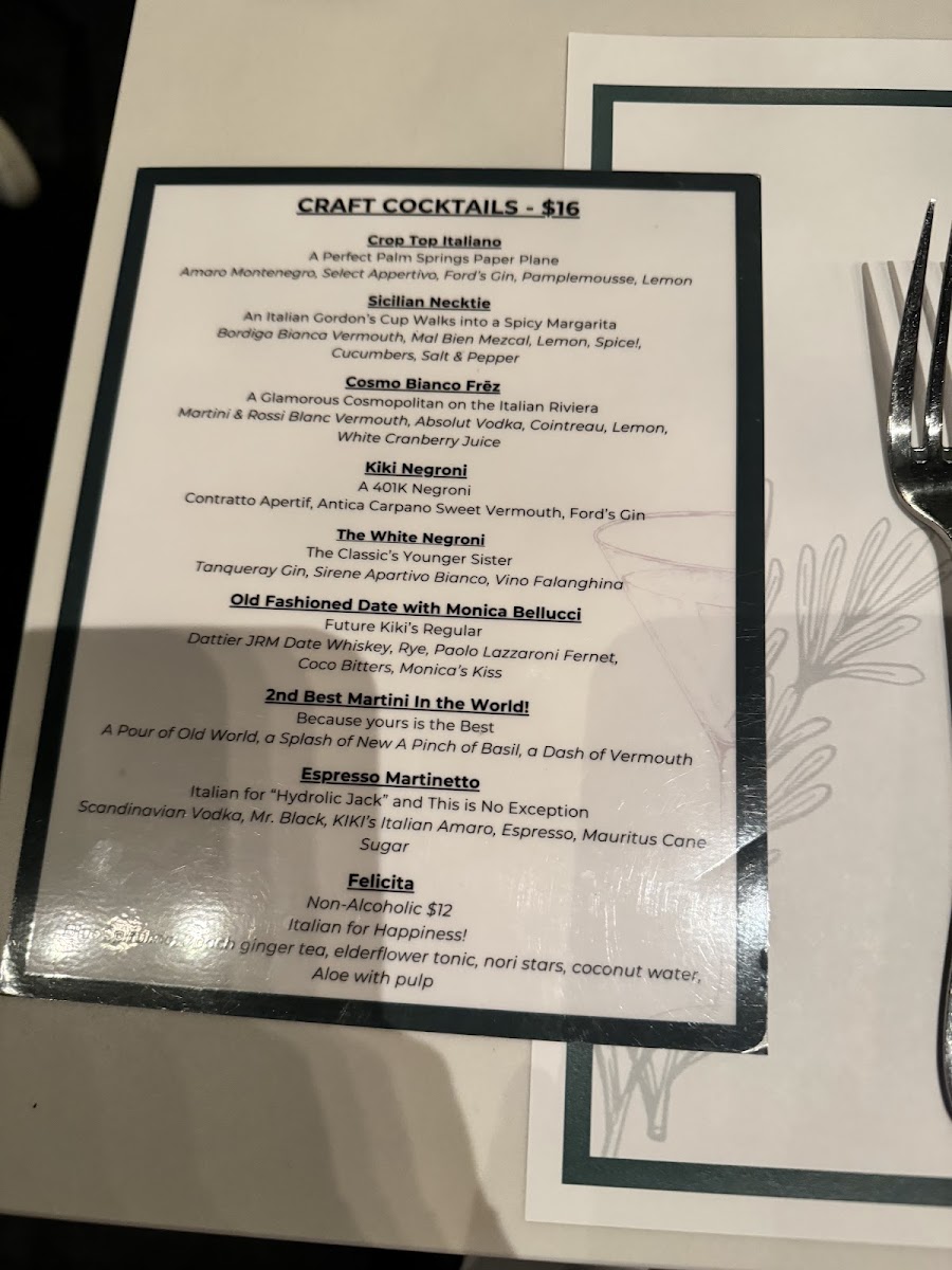 Overall, Kiki’s offers a well-balanced menu rich in textures and bold, fresh flavors—ideal for those seeking genuine Italian cuisine with a modern twist in the desert. The warm service and careful attention to detail only add to its charm.